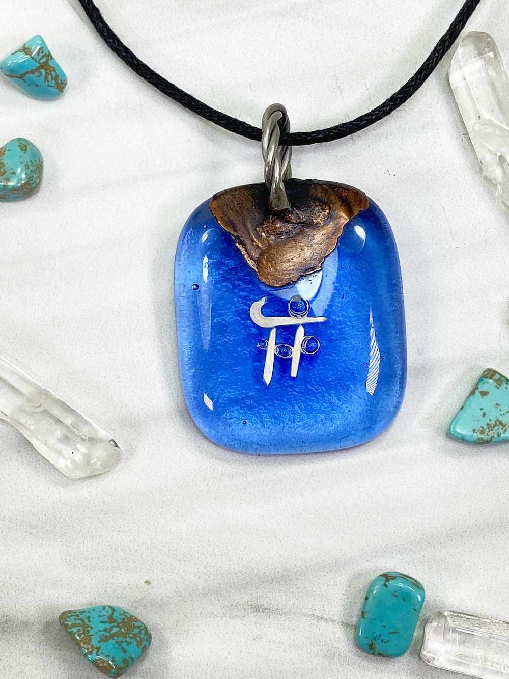 The listing is for one copper pendant with 19″ black cord necklace with .999 Investment Grade Fine Silver Imbedded In Fused Glass, finished with natural patina which results in a raw and more organic look.