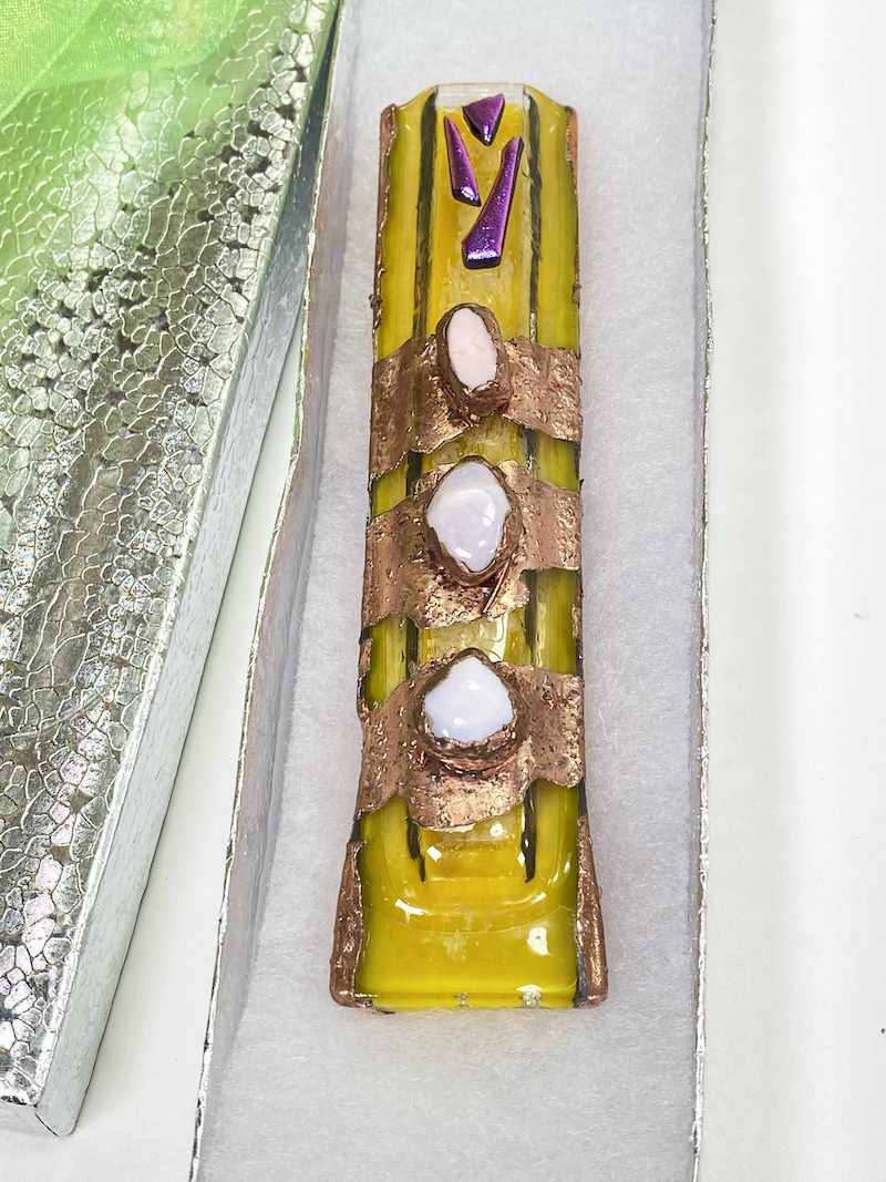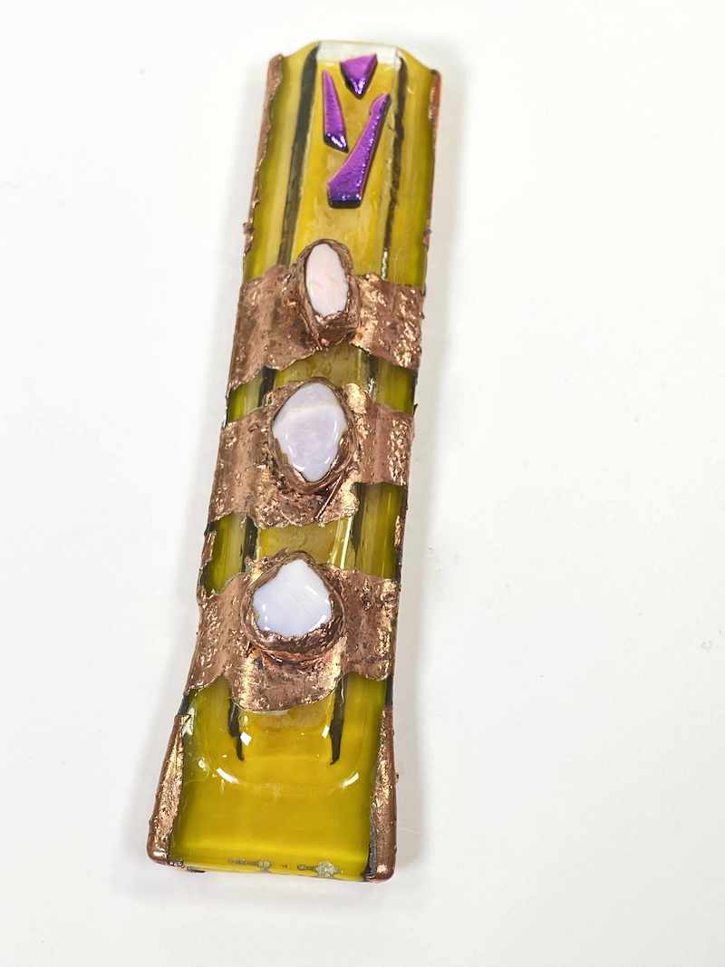handmade mezuzah, mezuzah case, mezuzah, mezuzah with scroll, handmade, jewish mezuzah, mezuzah cover, modern mezuzah, copper mezuzah, Fused glass mezuzah, Bar bat mitzvahs, handmade Judaica, Hanukkah gift, glass mezuzah, mezuza